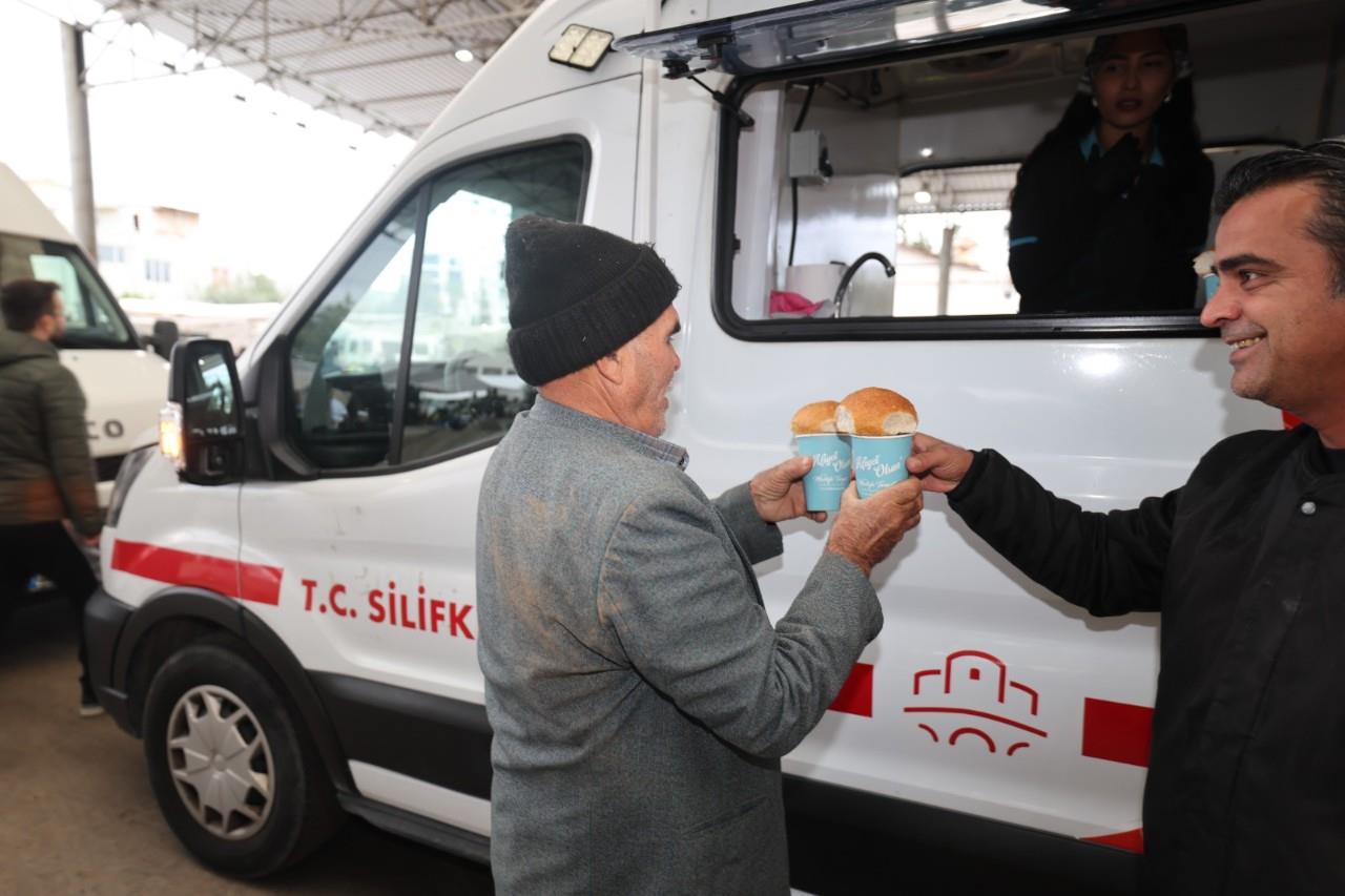 Silifke Belediyesi, sosyal belediyecilik çalışmaları kapsamında Pazartesi Pazarı’nda pazar esnafına ve alışverişe gelen vatandaşlara mobil ikram aracıyla sıcak çorba dağıttı. Sabahın erken saatlerinde pazara gelen belediye ekipleri, mobil araçtan ikram ettikleri çorbayla soğuk havada esnafın ve vatandaşların içini ısıttı.