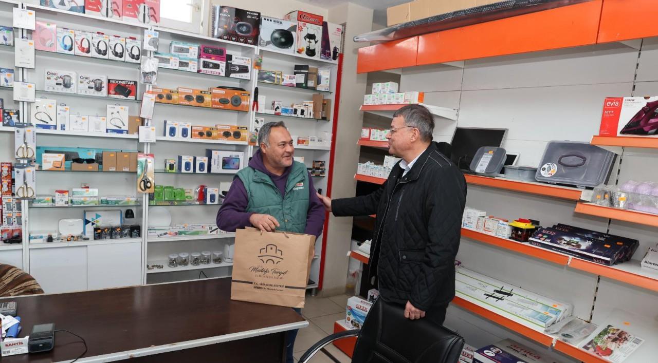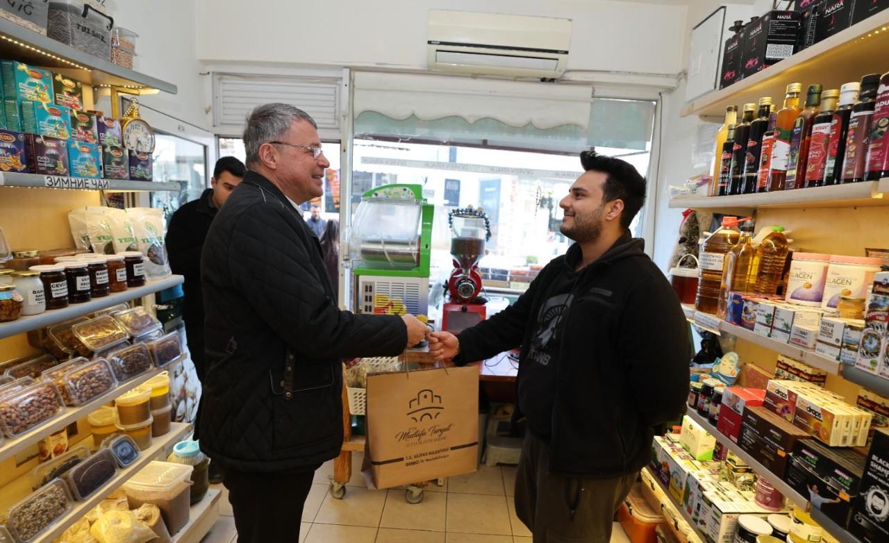 Samimi bir atmosferde gerçekleşen buluşmalarda Başkan Dr. Turgut, esnaflara yılbaşı dolayısıyla sürpriz hediyeler takdim etti. Sıcak ilgiyle karşılanan Başkan Dr. Mustafa Turgut gösterilen misafirperverlik ve hoş sohbetler için teşekkür etti.